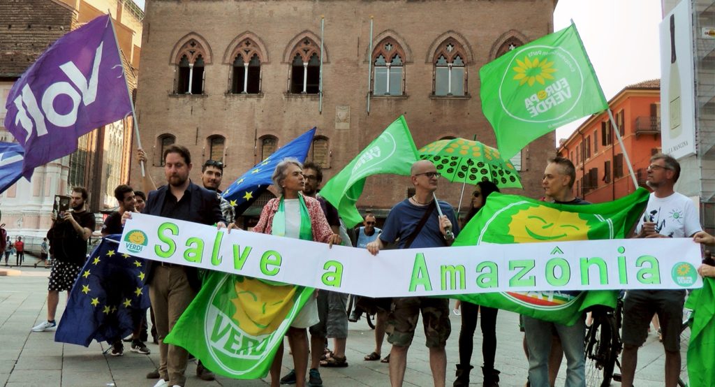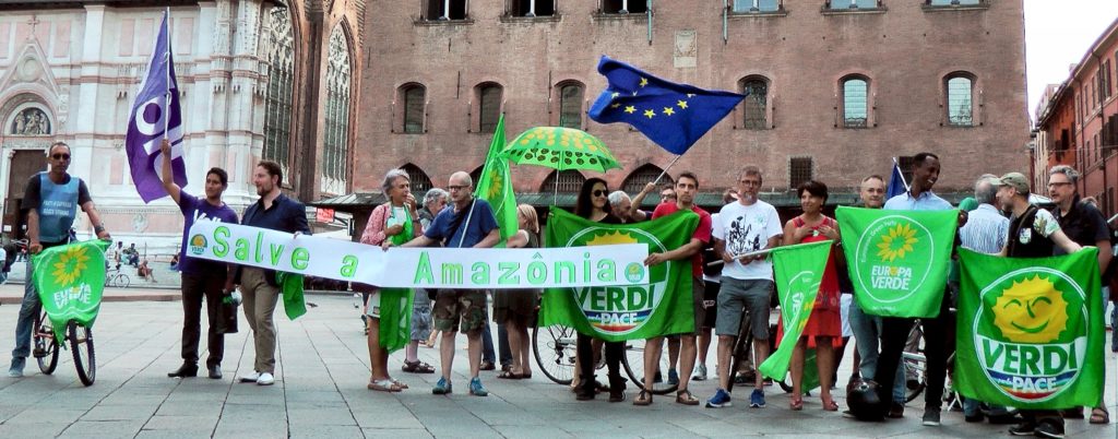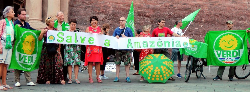 Ieri pomeriggio, lunedì 26 agosto verso le ore 17, un gruppo di Verdi, fra cui Silvia Zamboni, capolista di Europa Verde per il Nord-Est alle recenti elezioni europee, si è ritrovato con bandiere e striscioni per manifestare in difesa della Foresta Amazzonica, ormai compromessa, nel Brasile di Bolsonaro, dai disboscamenti selvaggi e dagli incendi dolosi, sempre più diffusi ed estesi.