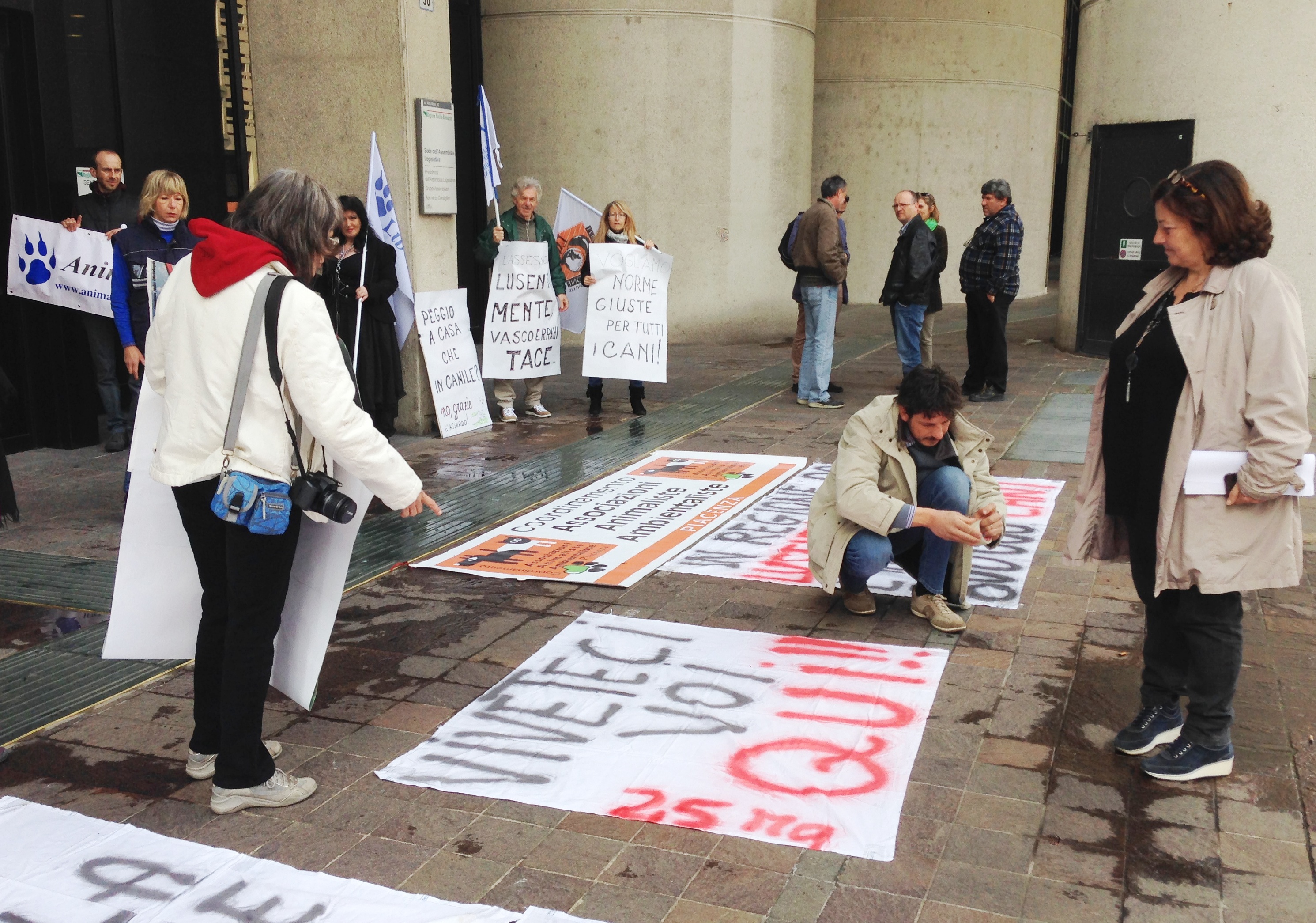 Oggi, con gli animalisti, per chiedere alla Regione un impegno deciso affinchè i cani possano avere box adeguati alle LORO esigenze…non a quelle dei cacciatori.